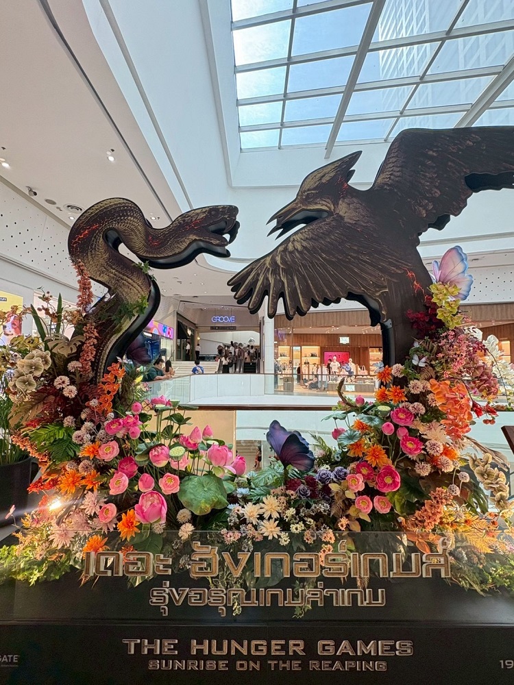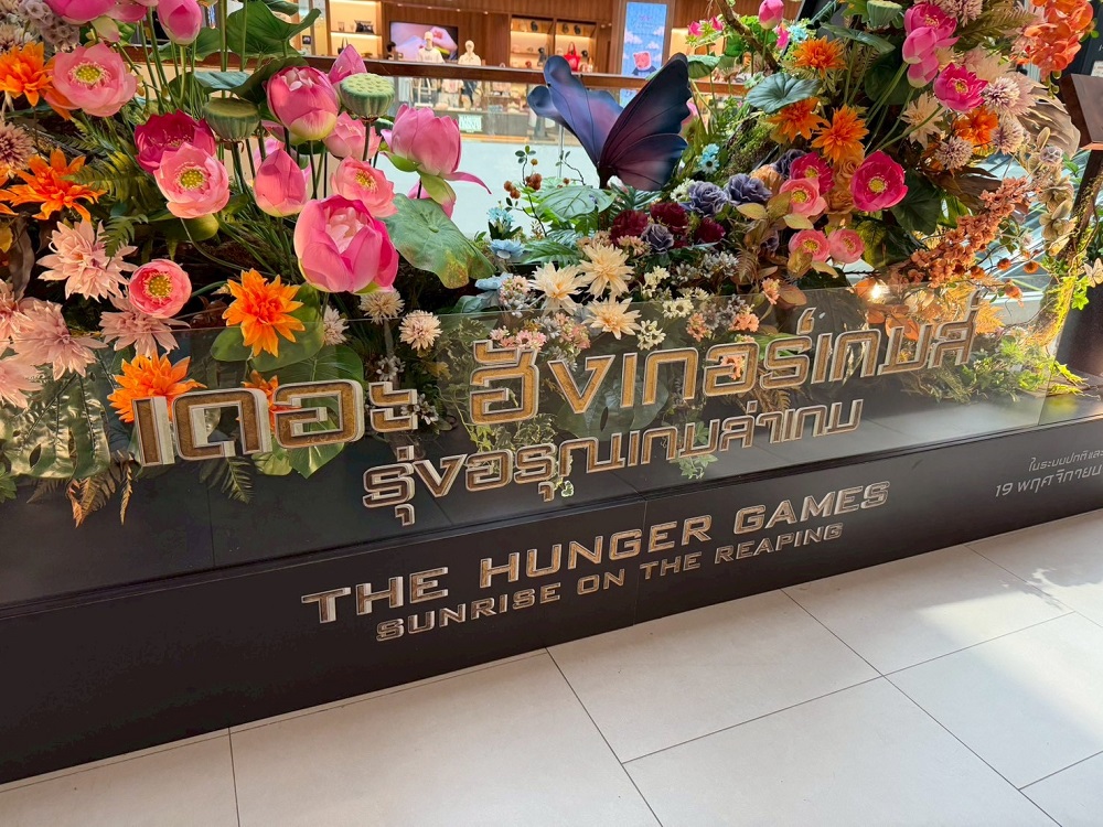 เอกลักษณ์สำคัญของดิสเพลย์ในประเทศไทย คือการผสมผสานดอกไม้สายพันธุ์ไทยอย่าง “ดอกบัว” และ “กล้วยไม้ป่า” เข้ามาสร้างความสวยงามอย่างแตกต่าง โดยเฉพาะดอกบัวที่นอกจากจะเสริมความงดงามเฉพาะตัวแบบไทยแล้ว ยังสื่อถึงการตื่นรู้ทางจิตวิญญาณพร้อมรับมือทุกสิ่งที่กำลังจะเกิดขึ้นในวันใหม่ เกมใหม่ ประวัติศาสตร์ใหม่ สอดคล้องกับชื่อไทยของภาพยนตร์ “เดอะ ฮังเกอร์เกมส์ รุ่งอรุณเกมล่าเกม” ได้อย่างลงตัว
