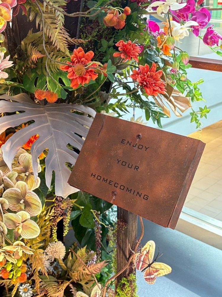 อีกทั้งยังมีป้ายข้อความ ENJOY YOUR HOMECOMING” ซึ่งเป็นถ้อยคำที่ “ประธานาธิบดีสโนว์” พูดกับ “เฮย์มิตช์ อะเบอร์นาธี” เมื่อการแข่งขัน “เดอะ ฮังเกอร์เกมส์ ครั้งที่ 50″ ได้สิ้นสุดลง ซึ่งเป็นคำกล่าวอันแสนงดงามที่อาจเป็นจุดเปลี่ยนสำคัญของเฮย์มิตช์ เด็กหนุ่มจากเขต 12 บรรณาการคนสำคัญในเกมล่าชีวิตครั้งนี้