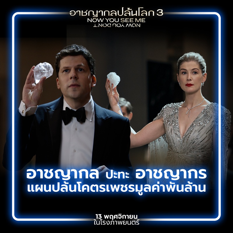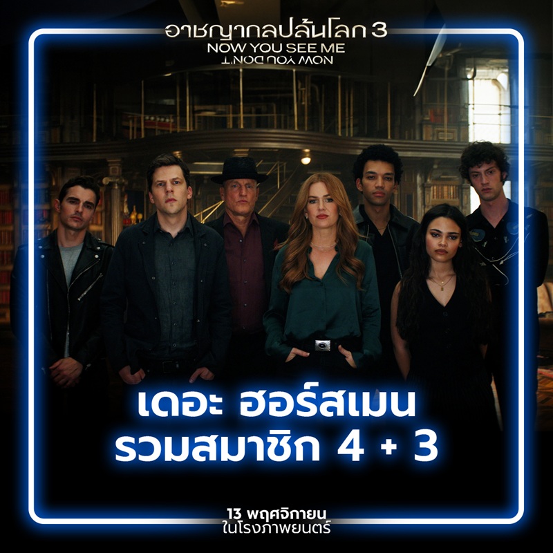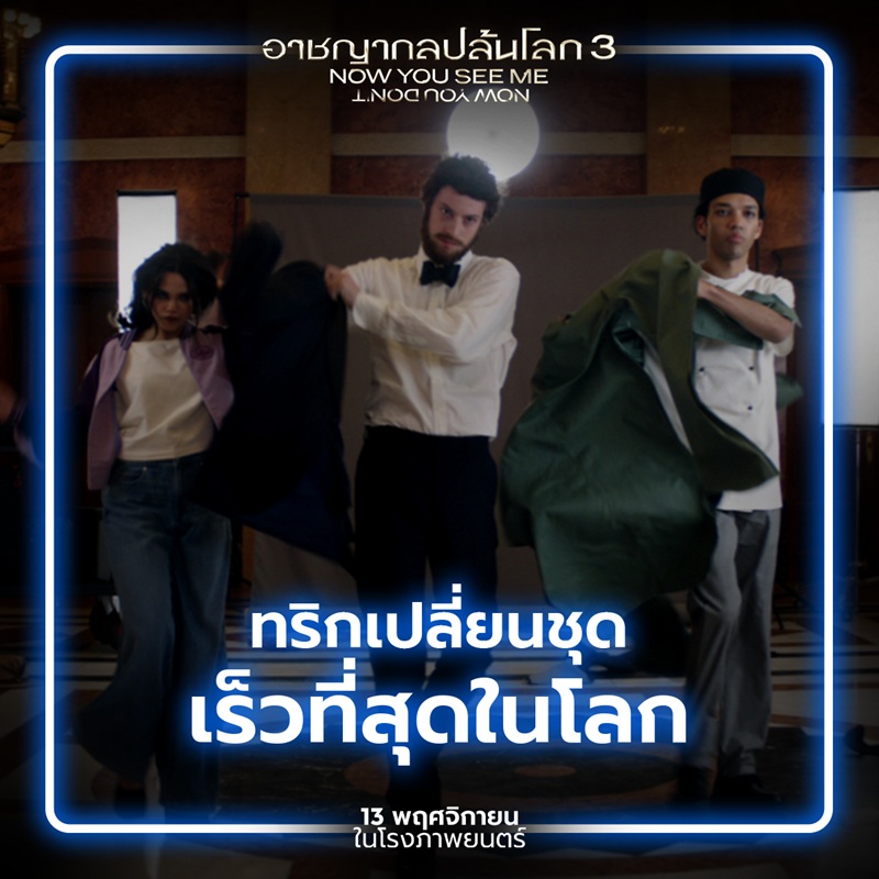 “จตุรอาชา” กลับมาแล้ว พร้อมแท็กทีม “นักมายากลรุ่นใหม่” ที่จะมาแสดงกลสุดล้ำ หักมุมเกินคาดเดา และใช้เวทมนตร์แบบเรียลไทม์อย่างที่ไม่เคยปรากฏในโลกภาพยนตร์มาก่อน กับ “ภารกิจโจรกรรมครั้งใหญ่ที่สุดในประวัติศาสตร์” เพื่อเอาคืน “เหล่าวายร้าย” อย่างสาสมใน Now You See Me: Now You Don’t อาชญากลปล้นโลก 3″ มันส์ก่อนอเมริกา 13 พฤศจิกายนนี้ ในโรงภาพยนตร์
