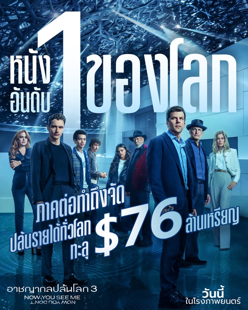 เปิดตัวแรงขึ้นแท่น “หนังอันดับ 1 ของโลก” สมฐานะภาพยนตร์อาชญากรรมมายากลที่หลายคนรอคอยมานานกับ “Now You See Me: Now You Don’t อาชญากลปล้นโลก 3″ ที่กวาดรายได้ถล่มบ็อกซ์ออฟฟิศทั่วโลกไปแล้วกว่า 76 ล้านดอลลาร์สหรัฐ ซึ่งรายได้ส่วนใหญ่มาจากตลาดต่างประเทศที่สามารถกวาดรายได้ไปสูงถึง 54.2 ล้านดอลลาร์สหรัฐ
