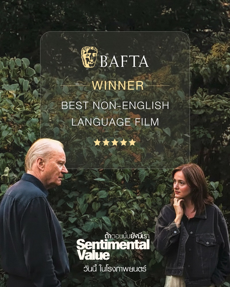 ฤดูกาลประกาศรางวัลภาพยนตร์ระดับโลกได้จารึกประวัติศาสตร์หน้าใหม่อีกครั้ง เมื่อภาพยนตร์ดราม่าแสนงดงามอย่าง “Sentimental Value ถ้าตอนนั้นยังมีเรา“ ผลงานการกำกับชิ้นเอกของ “ยัวคิม เทรียร์” ได้ก้าวขึ้นเวทีอันทรงเกียรติแห่งเกาะอังกฤษ และคว้ารางวัลใหญ่จากเวที “BAFTA 2026” หรือ “British Academy Film Awards ครั้งที่ 79” ในสาขา “ภาพยนตร์ภาษาต่างประเทศยอดเยี่ยม” (Best Film Not in the English Language) มาครองได้อย่างสมศักดิ์ศรี ท่ามกลางเสียงปรบมือที่ดังกึกก้องจากผู้คนในวงการภาพยนตร์โลก
